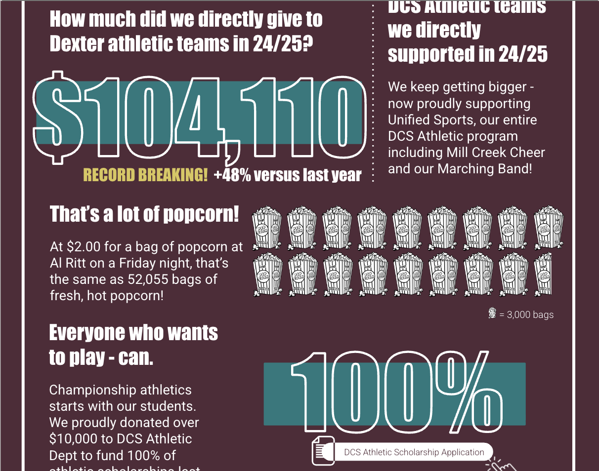 We believe in the power of sports to shape lives, create positive change, and bring communities together. We exist to support our championship athletic program and ensure every student has the opportunity to play and succeed by donating 100% of proceeds to Dexter Athletics.